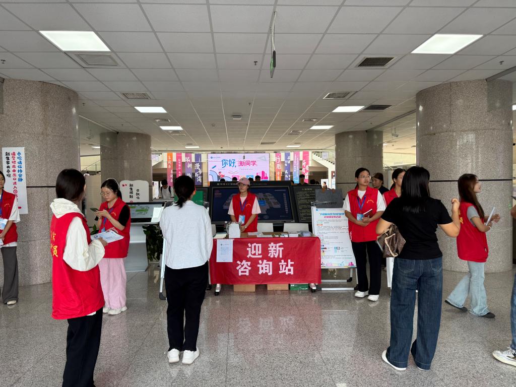 此外,为了让新生更好地利用图书馆资源,工作人员在现场发放入馆指南并提供入馆培训,详细讲解借阅流程、电子资源使用方法,耐心解答疑问,帮助新生迅速熟悉图书馆的各项服务。