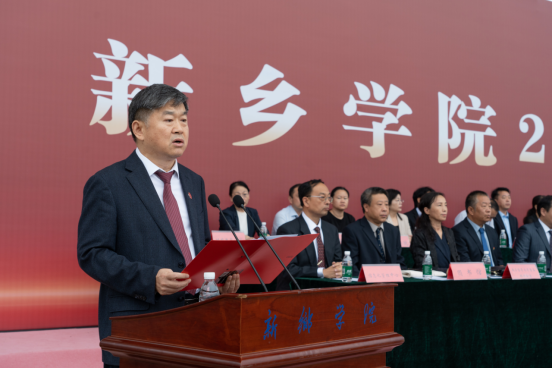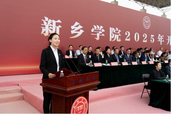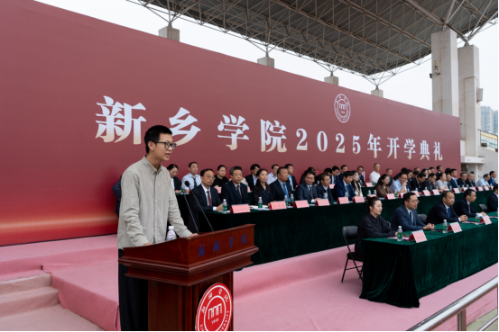 金秋迎胜景,星火启新程。9月15日上午,新乡学院2025年开学典礼在西区田径场隆重举行。党委书记王孝俊,党委副书记宋伟,副校长韩辉、杨钧、张银堂、陈磊山、赵伟杰,学校各部门、学院领导、教师代表与8200余名2025级新生共同参加了典礼。典礼由韩辉主持。