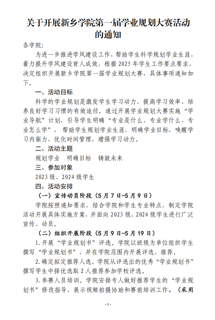 关于开展新乡学院第一届学业规划大赛活动的通知