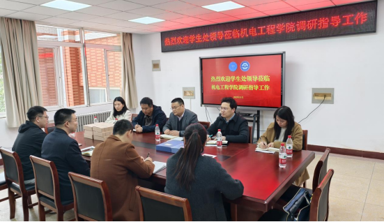 3月12日下午,学生处处长王坤,副处长叶喜民、贾晓萌率相关科室负责人莅临机电工程学院开展专项调研。机电工程学院党委书记张烨、党委副书记陈云飞及全体辅导员参加调研座谈会。