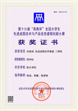 全国大学生先进成图技术与产品信息建模创新大赛由原教育部高等学校工程图学课程教学指导委员会、中国图学学会制图技术专业委员会和中国图学学会产品信息建模专业委员会联合主办的图学类课程最高级别的国家级赛事,规模大、水平高、参赛人数多,是最具影响力的全国性大学生赛事之一,被誉为“图学界的奥林匹克”,2018年被中国高等教育学会列入全国普通高校学科竞赛排行榜。机电工程学院高度重视本次大赛,认真组织教师参与指导。指导教师利用课余时间对学生进行培训指导。参赛队员刻苦训练,为赢得比赛夯实基础。4月初学院举行了校内选拔赛,优中择优;5月底参加了河南省选拔赛,取得优异成绩,队员们信心倍增。参赛队认真总结经验,加倍努力,为国赛做好充分准备。