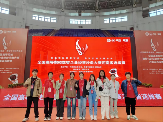 9月27日,管理学院参加了由中国商业联合会、新道科技股份有限公司主办,郑州大学承办的全国高等院校数智企业经营沙盘大赛河南省选拔赛,该项赛事为教育部2023全国普通高校大学生竞赛目录中的第74项赛事。本次比赛共有全国40所本科院校参赛,参赛队伍总计108支。新乡学院管理学院竞赛团队由宋路平、王韵、荆春棋和李元晖老师指导。荆春棋老师带队前往郑州大学参赛,几经角逐,最终在本次比赛中荣获二等奖。
